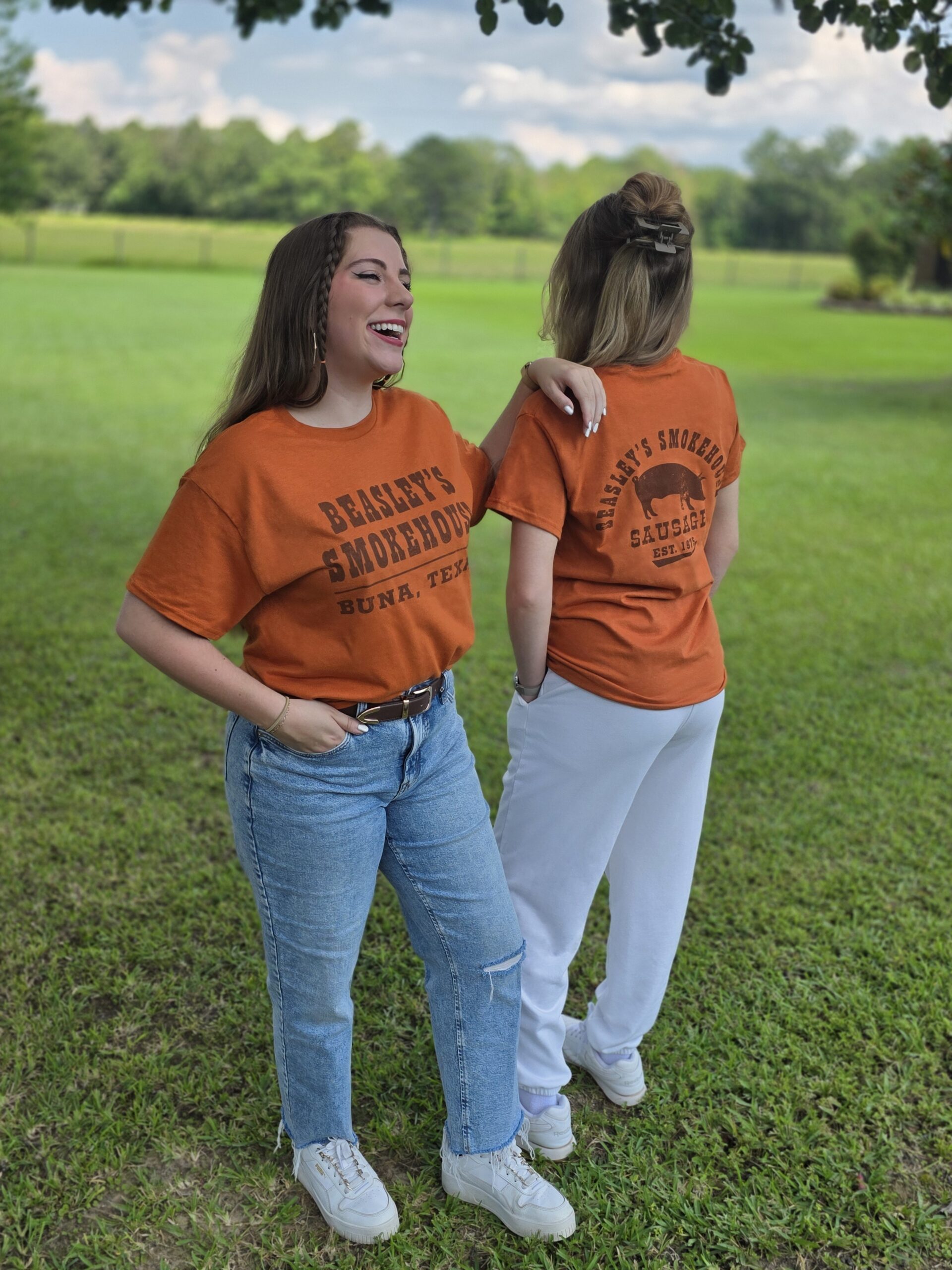 Celebrate a true Texas tradition with the Orange Beasley’s Heritage Tee — a nod to the smoke, flavor, and family that started it all back in 1975. Featuring the iconic Beasley’s Smokehouse logo on the front and a bold pig graphic on the back, this shirt captures the pride of Buna, Texas in every stitch.
